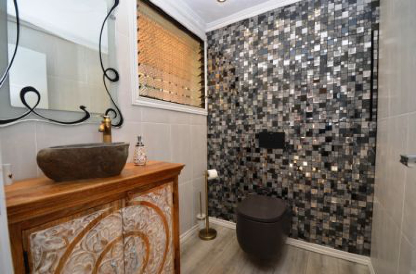 2 of them en suite, 2 bathrooms and 1 guest toilet. And a separate storage closet for the washing