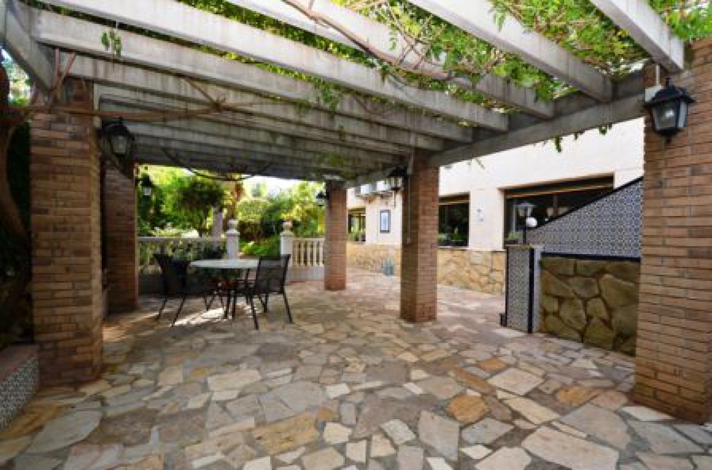 Also, the garden has several terraces and a large outdoor kitchen.