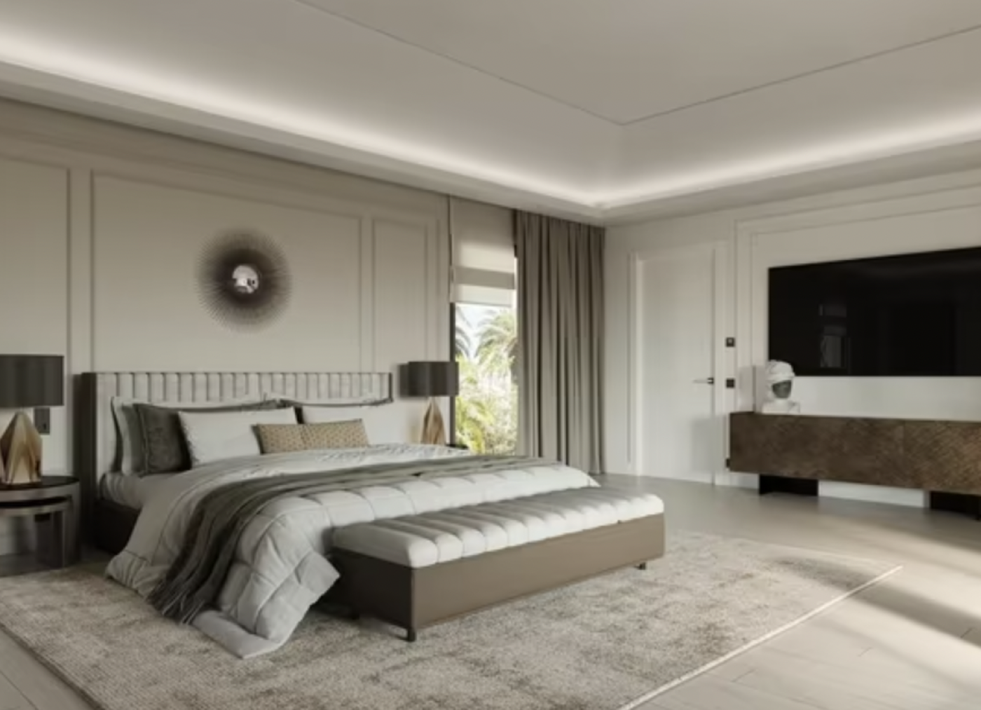 large windows and sliding doors to the terrace areas allow generous light to flood