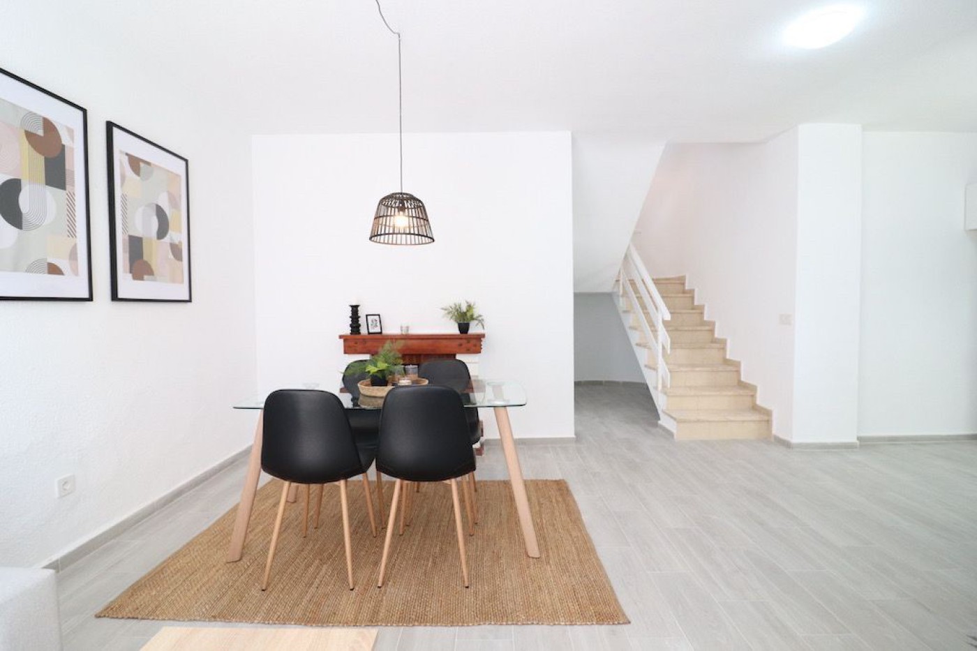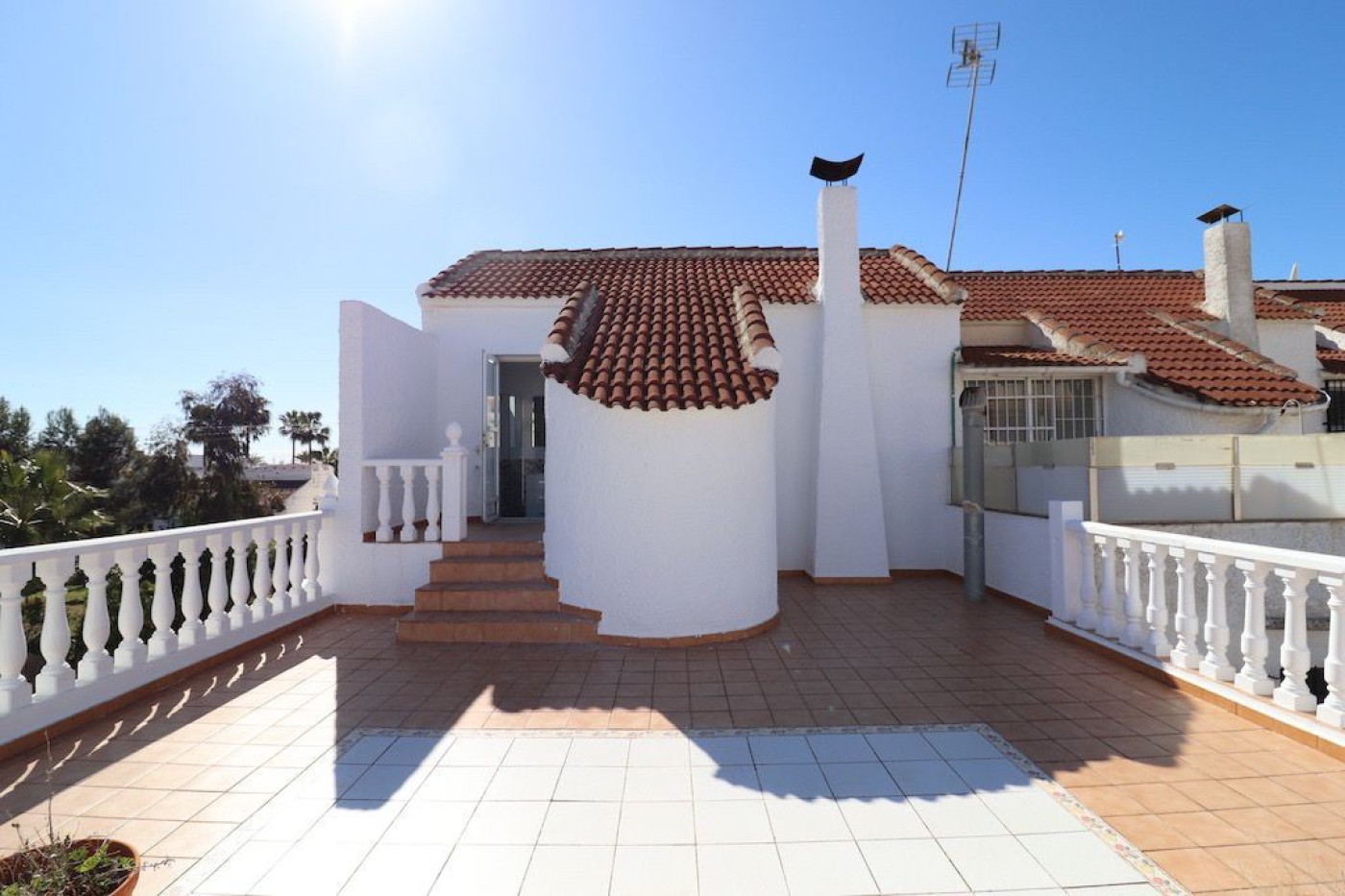 Villamartin Urbanization Verde Mar corner townhouse. South facing house of 110 m2 with a plot of 150 m2 the house has 3 bedrooms (possibility of 4) 2 bathrooms, living room with fireplace and kitchen, large solarium of about 25 m2. The house is sold furnished and with appliances. The urbanization has a large green area, driveway and communal pool. Price: 199,000.€