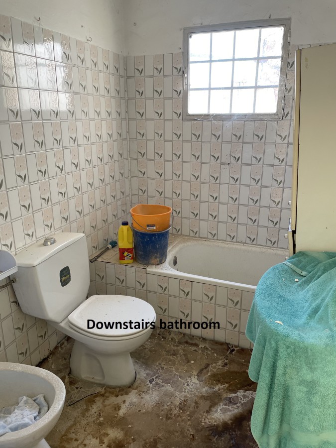 Downstairs, you enter through a hallway, on the left is a storeroom, on the right is the