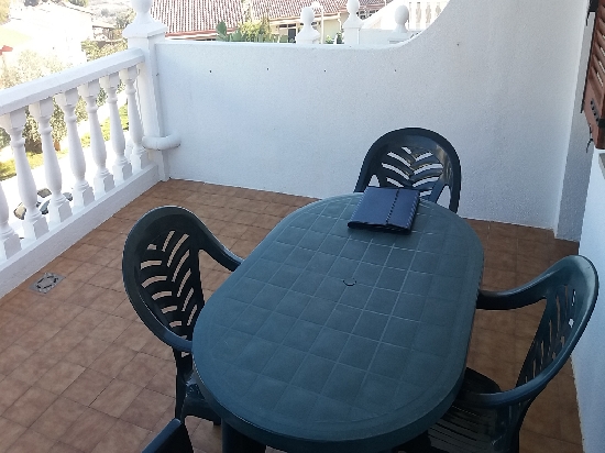PE ISCOLA Semi detached house for sale in the street Inglaterra Atalayas area with 2 bedrooms closed garage 2 terraces and communal pool. The place located in a very quiet area with beautiful views of Pe scola and the sea. Of 3 heights on the ground floor this closed garage of approx. 20 m2. Above the garage we have the first terrace with beautiful views of Pe iscola and the sea. On the next floor we access through a terrace to the house we access the living room with fireplace kitchen recently renovated laundry and to the back where is the barbecue area. On the upper floor we have the 2 rooms a balcony and a bathroom. 137 000 price
