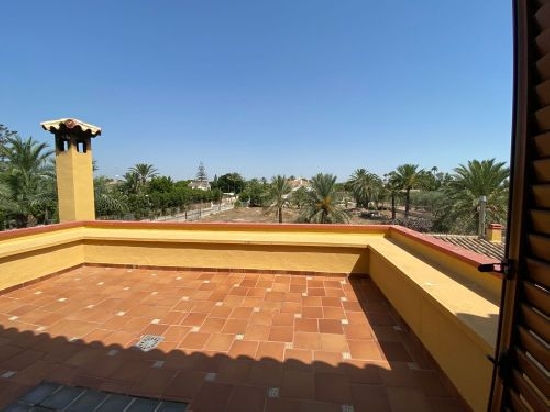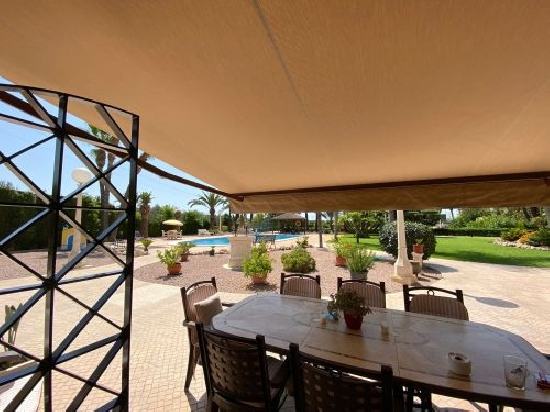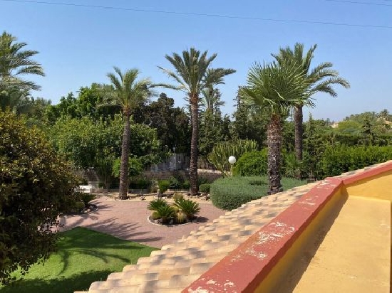 Magnificent villa for sale in Elche near the General Hospital and road to Santa Pola plot of 4 500m2 and 425 m2 built magnificent quiet area paved streets public lighting spectacular design villa 5 large bedrooms 5 full bathrooms equipped kitchen Large living room on the first floor living room cinema room with bar in basement 1 office and storage room with 2 bedrooms upstairs 3 bedrooms with 3 bathrooms with 2 terraces overlooking the pool and garden all windows with security system alarm and video surveillance large pool garden with fruit trees palm trees lawn very careful to detail parking spaces for several cars porch with barbecue summer kitchen and 1 toilet all very careful arranged visits.