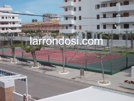PE ISCOLA Urbanization VORAMAR . BEAUTIFUL 2 BEDROOM TOWNHOUSE FOR SALE WITH PARKING This complex is located on the seafront on the beautiful sandy beach of Pe iscola! Distributed on the ground floor: kitchen and living dining room First floor with bathroom 2 bedrooms (one of the bedrooms with access to a terrace and side views of the sea) another terrace and a small patio In the complex you will find a large community pool and a tennis court.