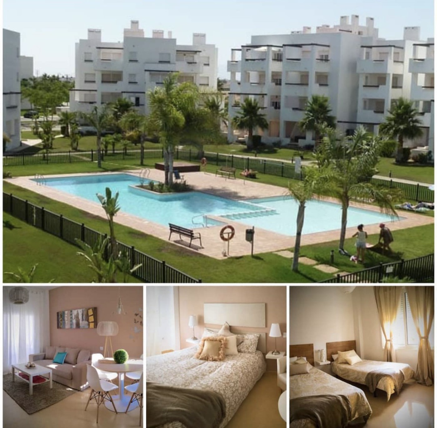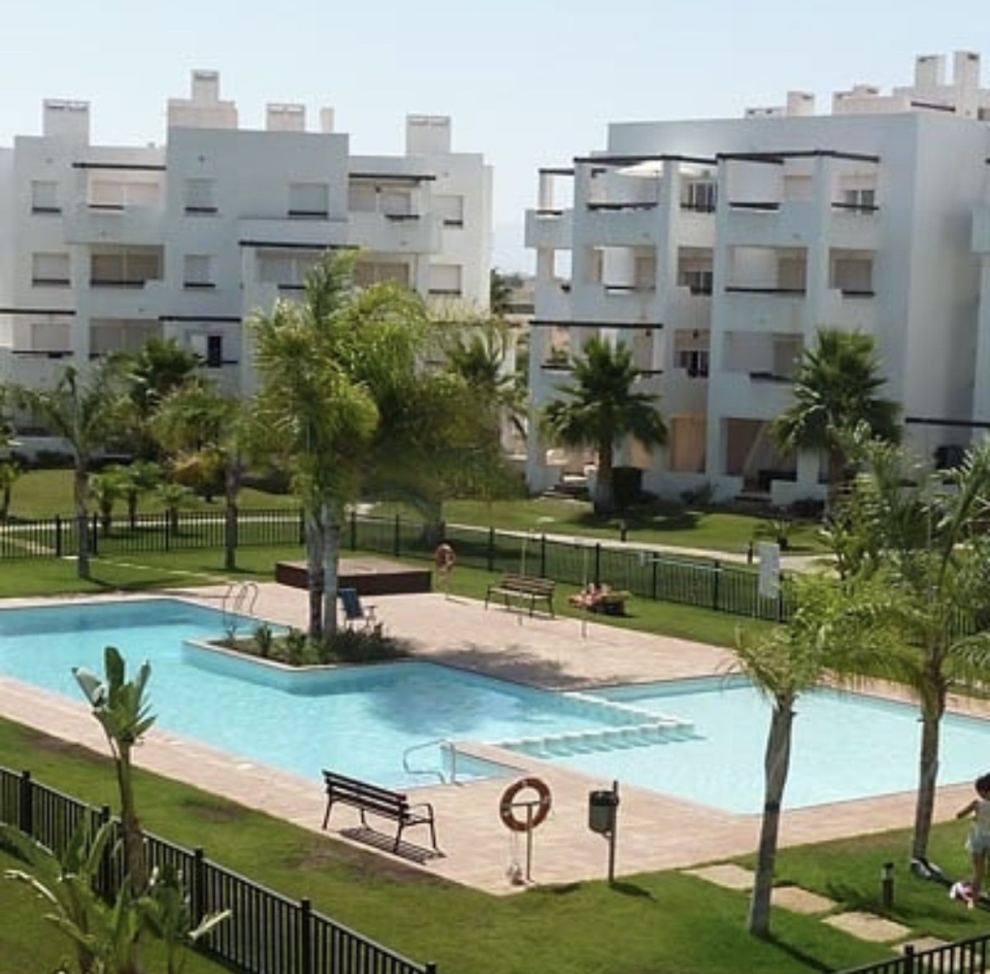 Urbanization with more than 5 swimming pools, a lake and golf yard, Irish bar and a supermarket.