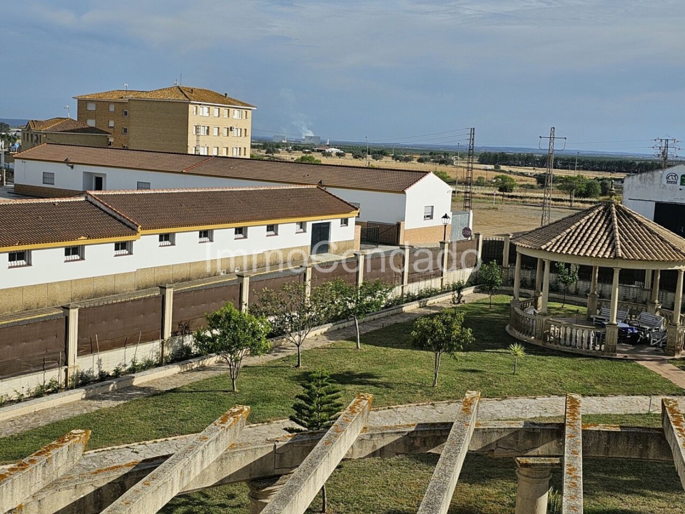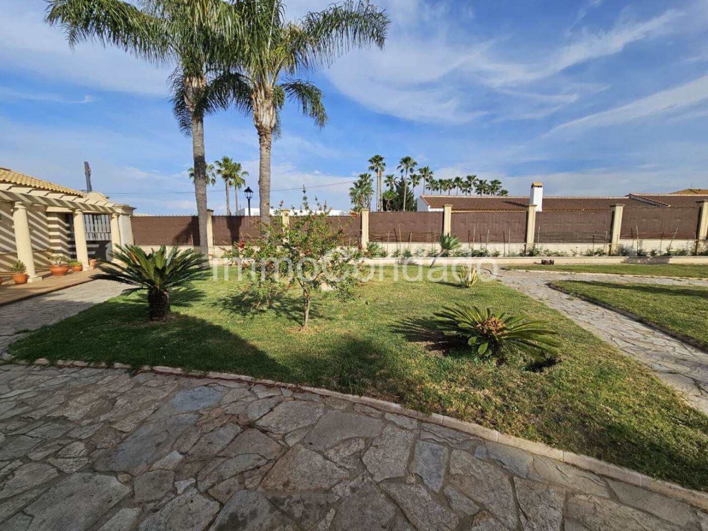 In the park-like garden there is a large pavilion and a fountain. The automatic irrigation