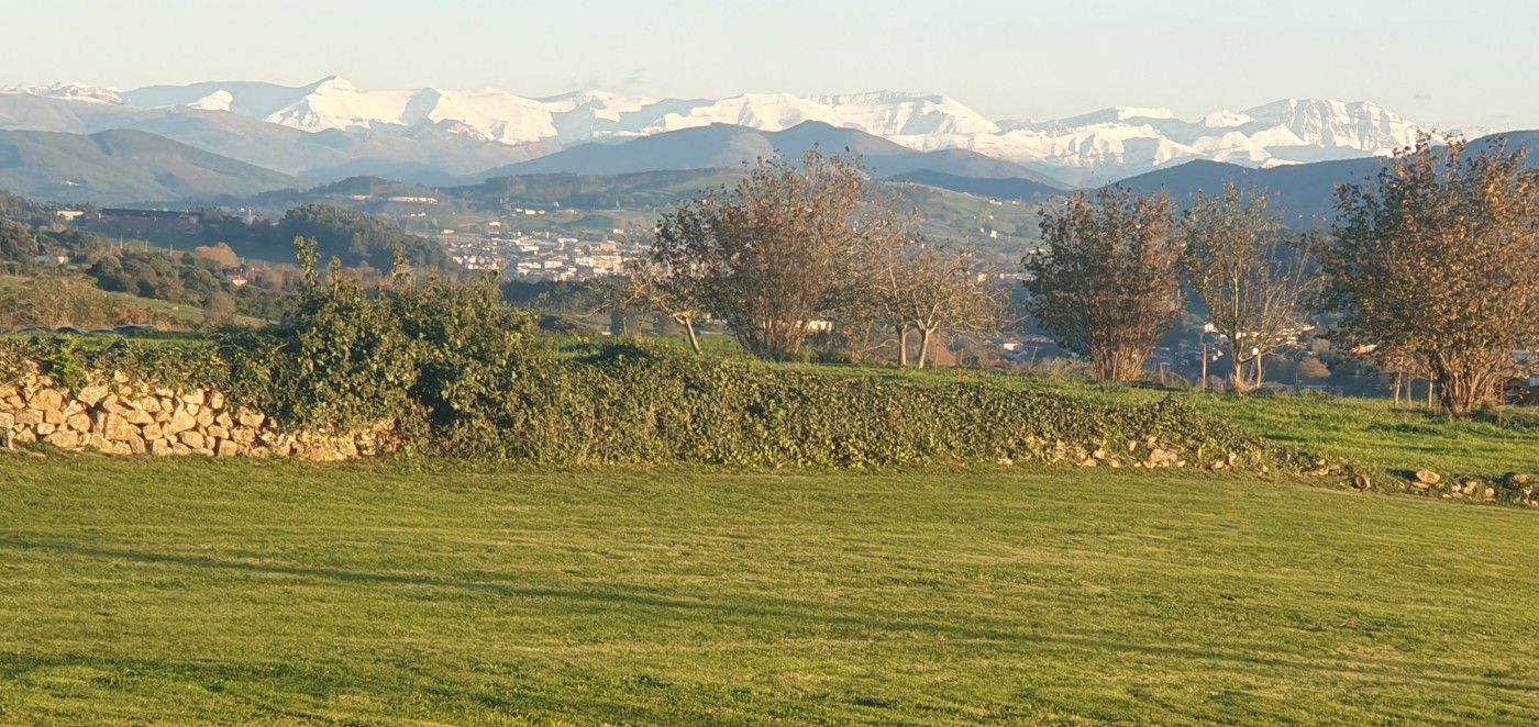 It also has a large, very simple garden, which frames the panoramic view from the south front of the house, extending the wide view towards the interior mountains of the region and a large terrace area with barbecue.