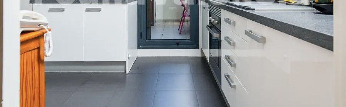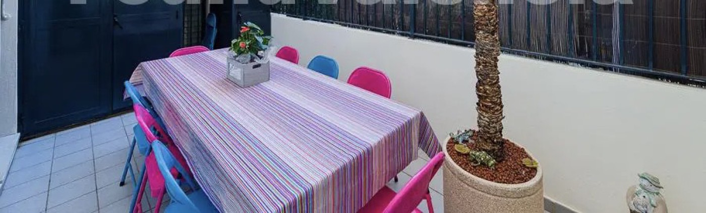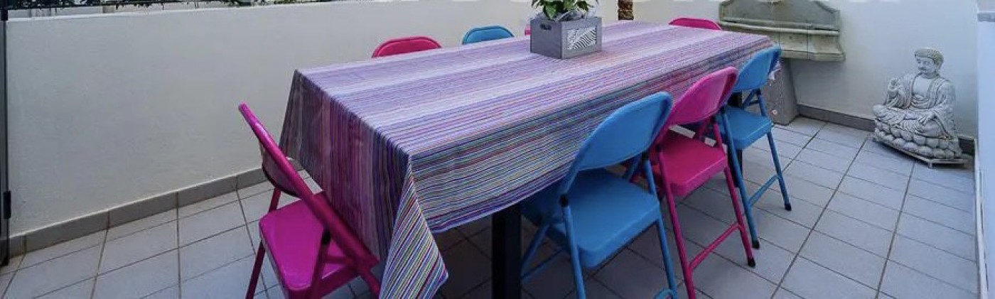 The apartment terrace leading from the kitchen offers a tranquil cool area to