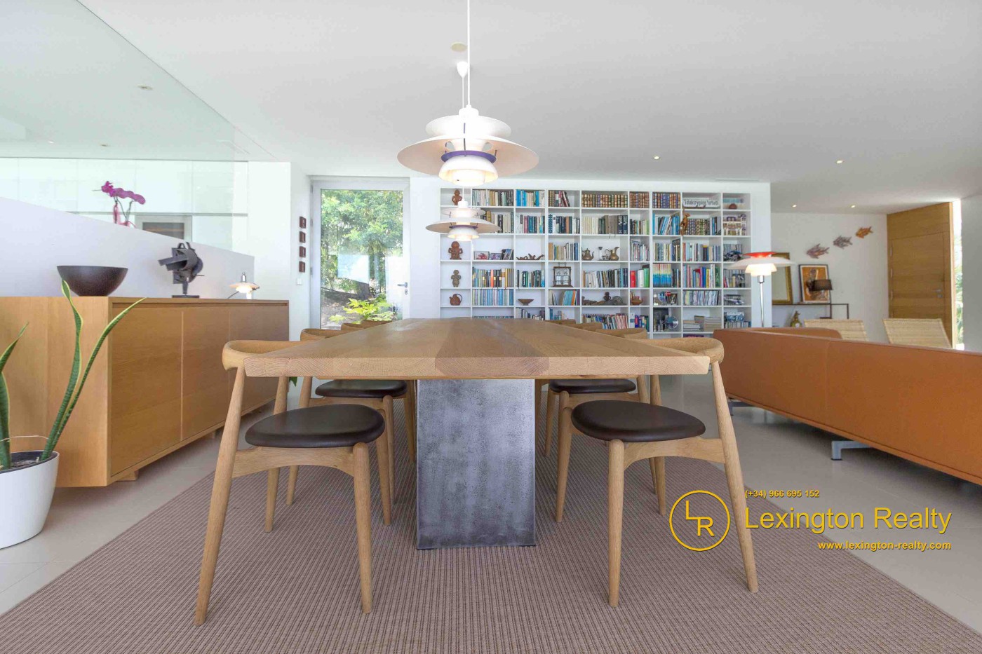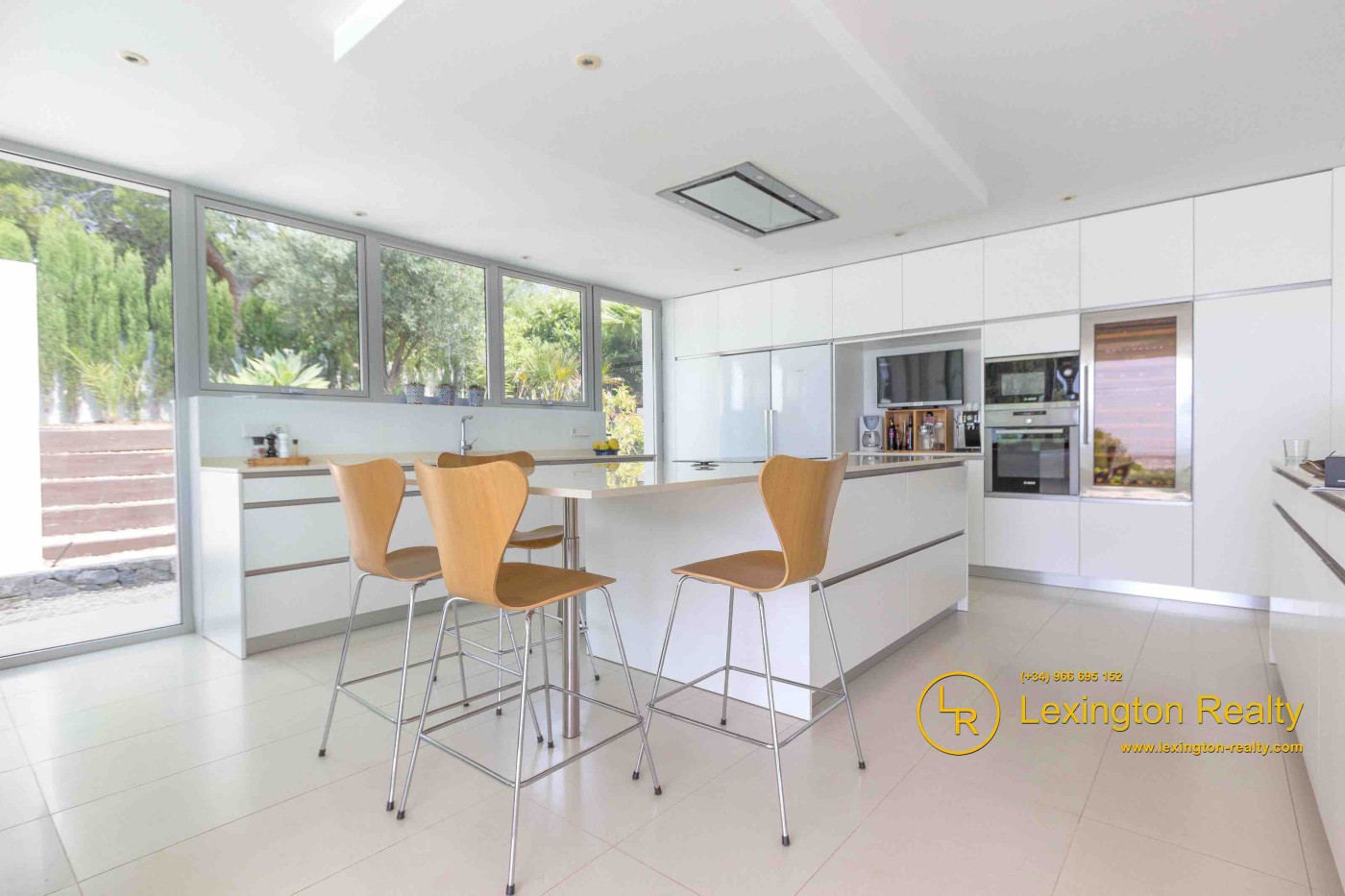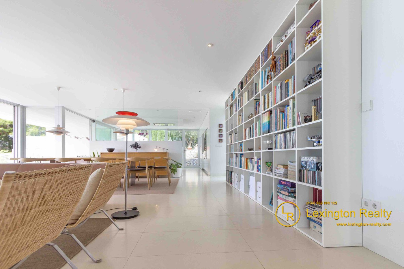 The villa is spread across two floors, offering a total living space of 445 m2. On the main floor,