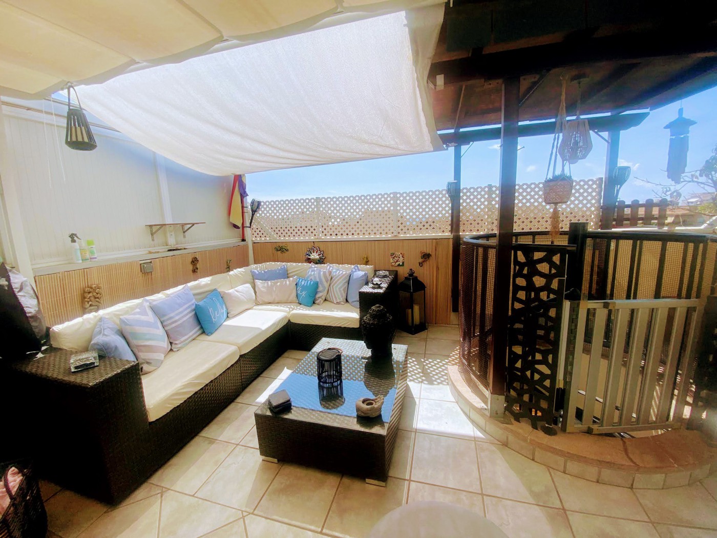 spiral staircase with solarium + barbecue + shower + lounge area + second dining room /