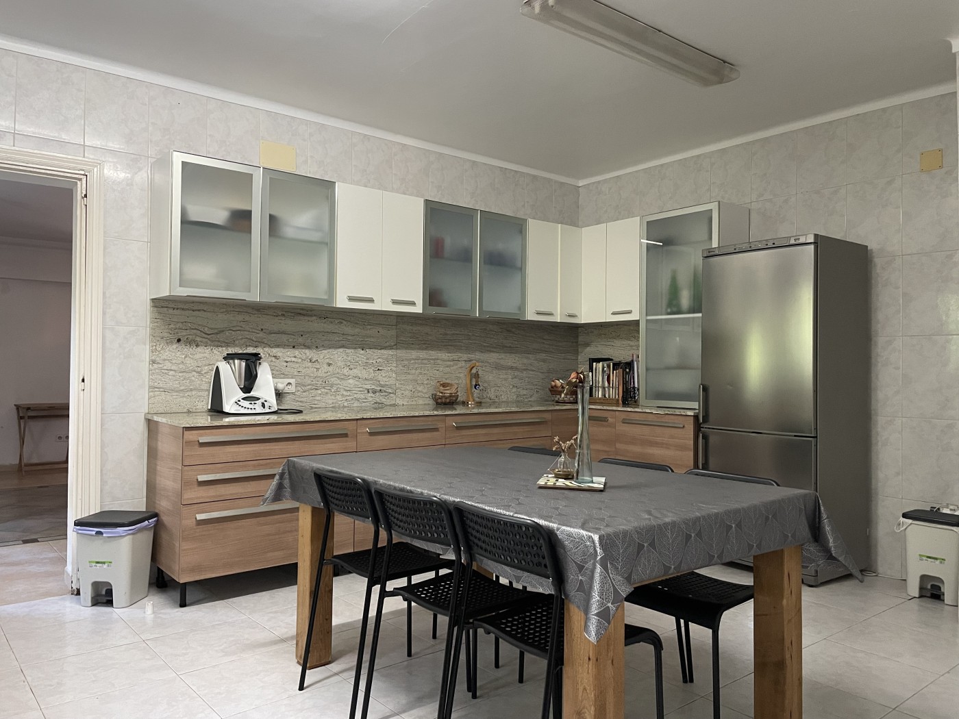 a large furnished and fully equipped kitchen, a living room with access to the garden and covered