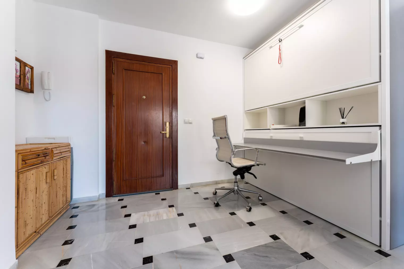 The apartment has 1 bedroom with built-in wardrobes, and another bedroom in the living room, a spacious bathroom, a well-equipped kitchen with a refrigerator, dishwasher, washing machine, microwave and a terrace.