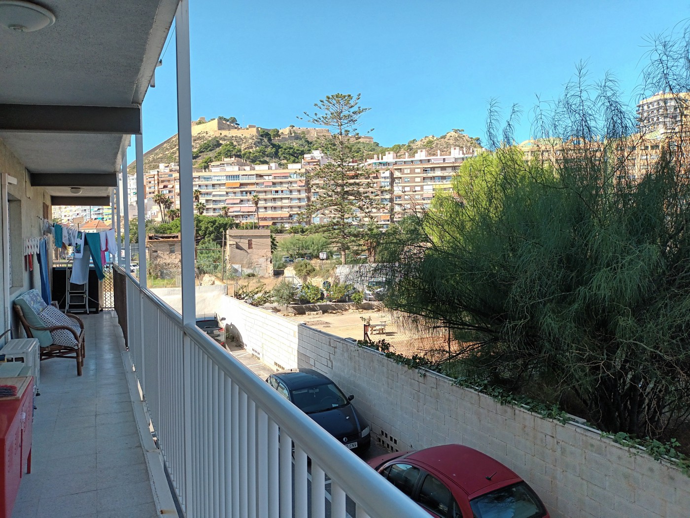 First line apartment at the Postiguet beach,Alicante. Second floor. 80 square meters. Views at the beach and Santa Barbara castle. Renovated,furnished. 2 airconditions. 3 elevators. 11 square meters room for the second bedroom. PVC windows-20 squire meters at the front and 40 squires meters at the back.