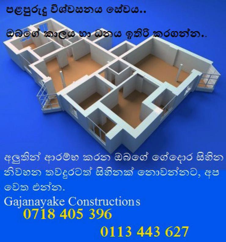 Gajanayake Construction No.2-17/A,2nd Floor. Udeshi City Building Makola Road, Kiribathgoda. --(Phone number)-- / --(Phone number)--