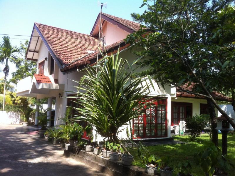 --(Phone number)-- ,Valuable land of 80P with architect designed up-stair House with 4 bedrooms, 2 pantries, terrazzo and tiled floors, pipe borne and well water, 9ft high parapet wall, 2 gates with 2 different access to the land, 250m and 100m away from Malabe Town through each access, well secured, calm and quiet surrounding with respectable neighbourhood. Can buy 40P with house and 40P land separately also