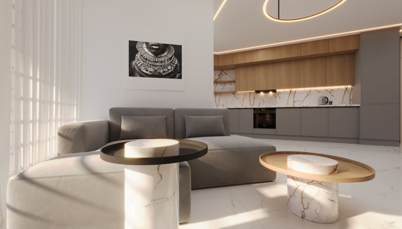 Spacious Living Room: High ceilings and elegant finishes
