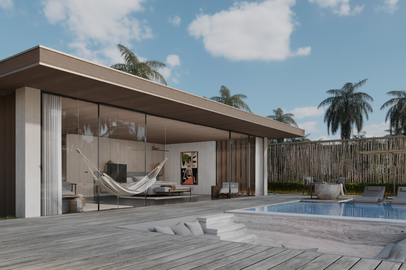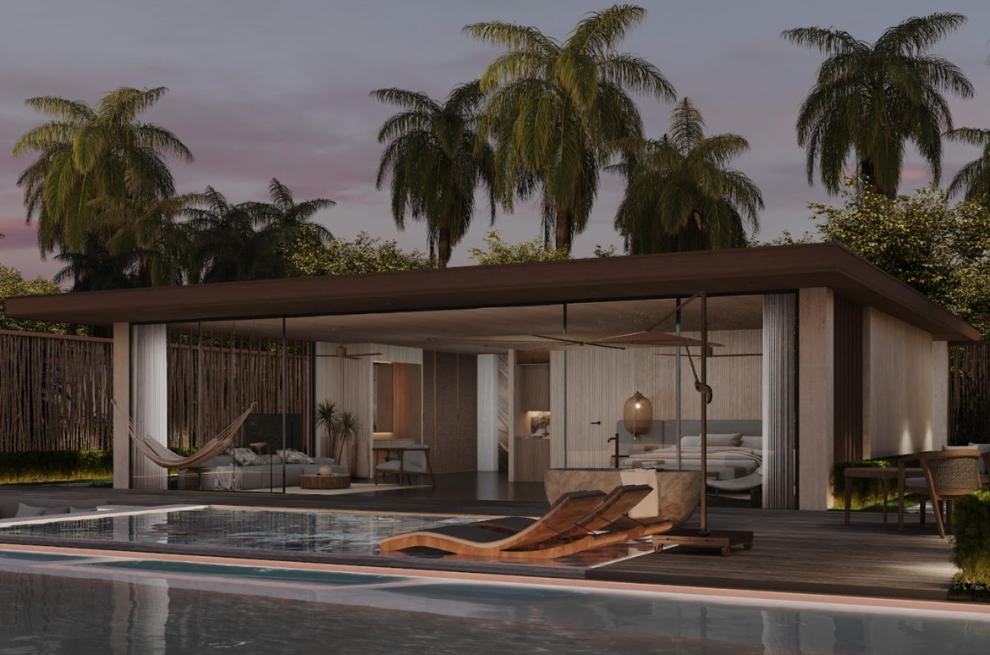 Property Features: • One Spacious Bedroom - Elegantly designed with premium finishes, ample natural light, and serene views. • Luxurious Living Room - A stylish, open-concept space with high ceilings, perfect for relaxation and entertainment. • Private Swimming Pool -` A refreshing oasis surrounded by lush greenery for ultimate privacy. • Outdoor Dining & Lounge Area - Perfect for alfresco meals under the stars or cozy evenings by the outdoor fireplace. • Tranquil Garden - A beautifully landscaped retreat where you can unwind to the sound of rustling palm trees. •Outdoor Bathtub - A lavish addition for a spa-like experience under the open sky.