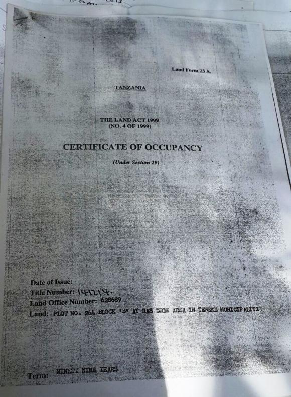 1.92 Ha Plot no. 264, block B, situated at Ras Dege area in Temeke municipalty. Clean title deed
