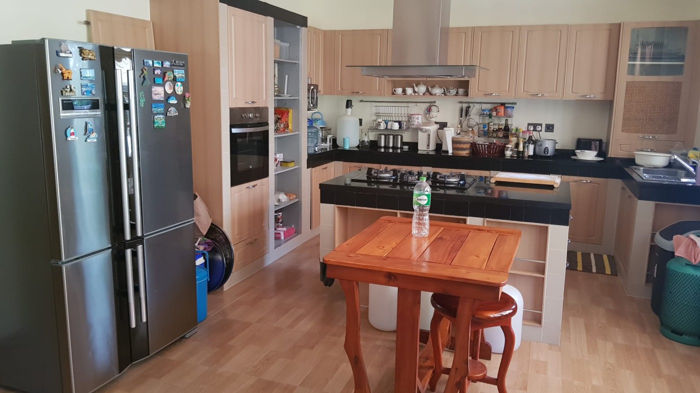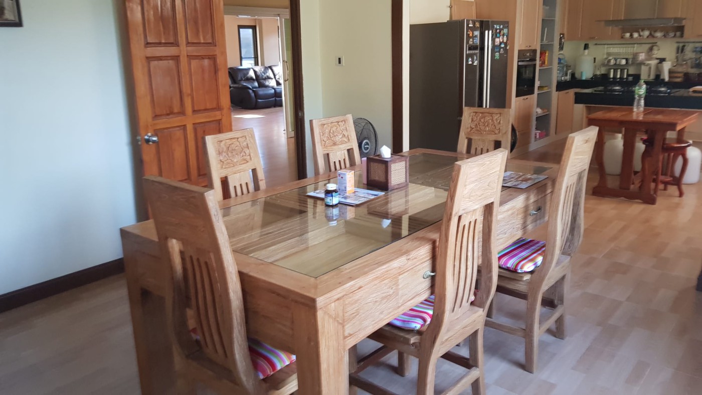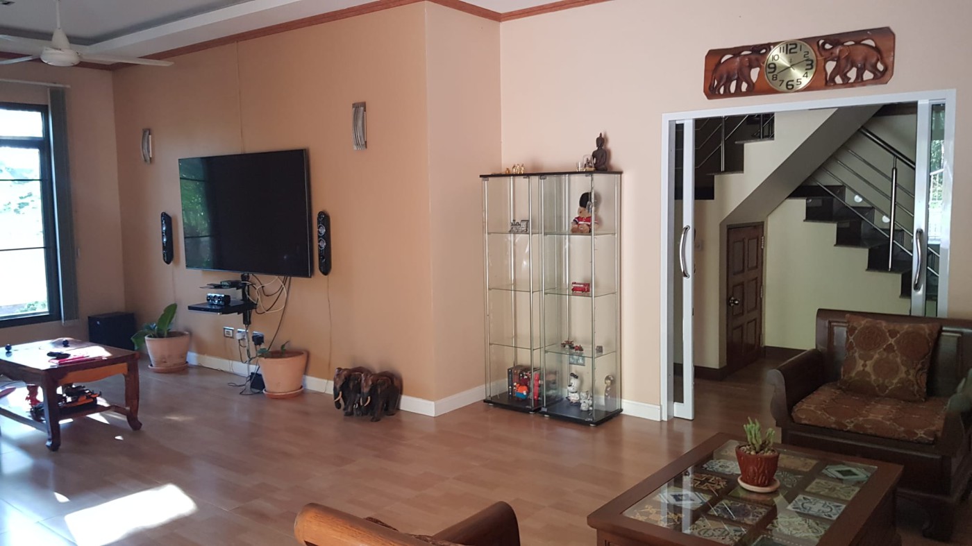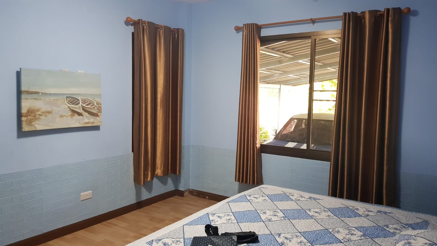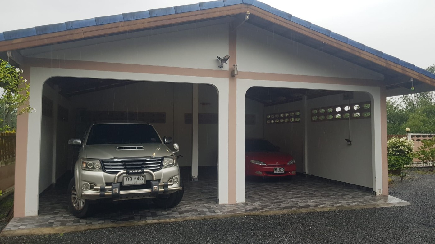 Discover a secure walled estate in Khlong Phon, Khlong Thom, Krabi, just 25 minutes south of Krabi International Airport. This two-story family home offers a four-bedroom main house (200 sqm) with three bathrooms (two en suite) and a separate self-contained one-bedroom apartment with en suite and sitting room (56 sqm). The property sits on 700 sqm of land and includes a double garage (56 sqm) plus a separate carport.