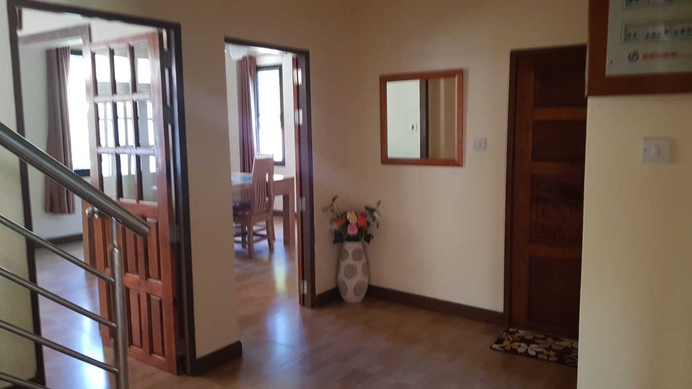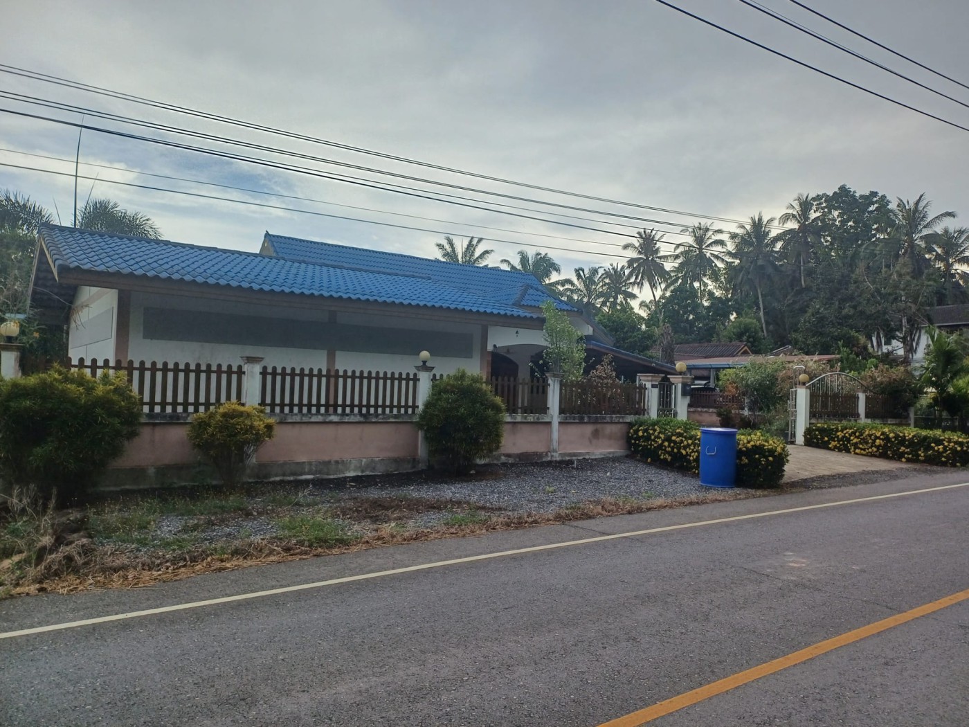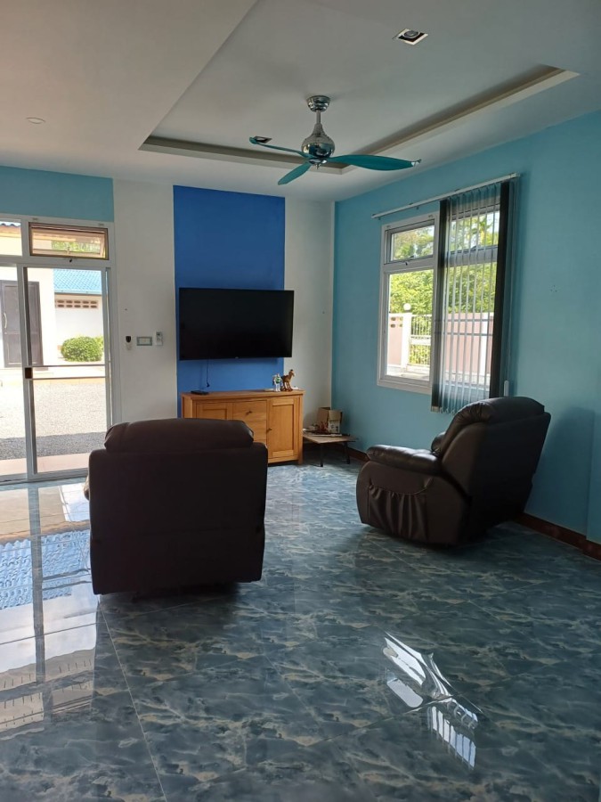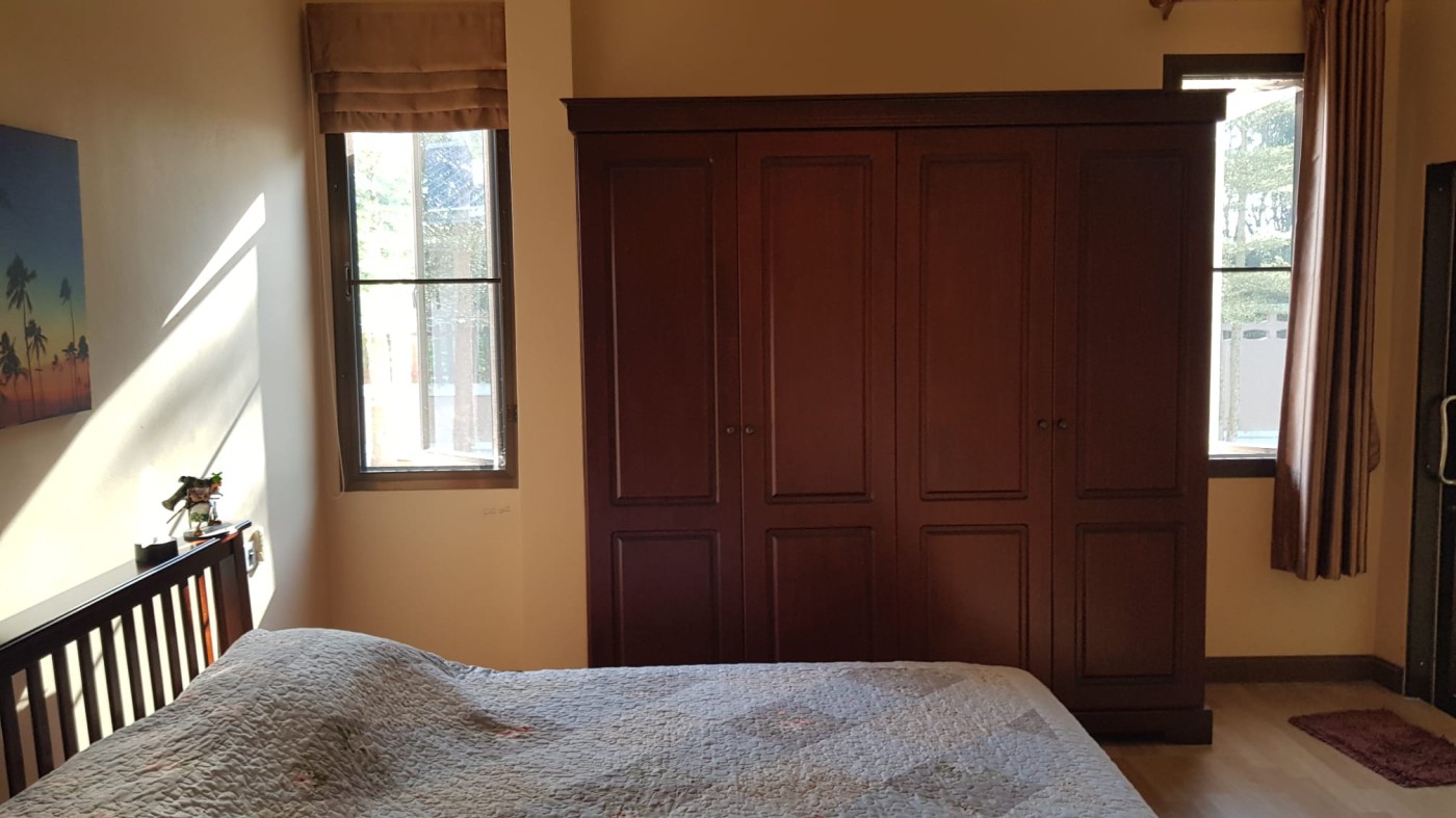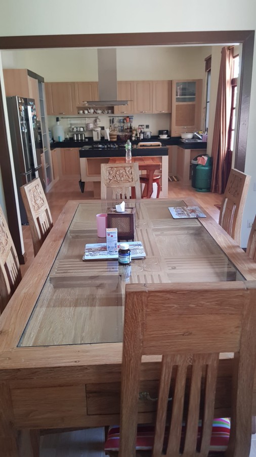 Discover a secure walled estate in Khlong Phon, Khlong Thom, Krabi, just 25 minutes south of Krabi International Airport. This two-story family home offers a four-bedroom main house (200 sqm) with three bathrooms (two en suite) and a separate self-contained one-bedroom apartment with en suite and sitting room (56 sqm). The property sits on 700 sqm of land and includes a double garage (56 sqm) plus a separate carport.