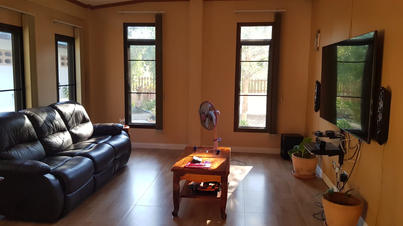 Inside, enjoy a TV room, sitting room, dining room, and LAN ports in every room. The kitchen and all bathrooms have hot and cold water from a private well. The wiring was installed by a UK electrician and fully tested for electrical safety. Ceiling fans are fitted in all rooms, and air conditioning is installed in the sitting room/TV room and two bedrooms, with wiring in place for additional bedrooms and the kitchen/dining area. The guest apartment also features LAN, ceiling fan, and A/C connections.