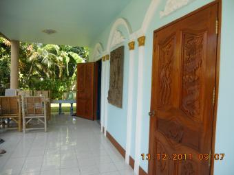 A two bedroom villa situated in the very popular Laguna area in Phuket, 1 km from the beach, 3,5 km to drive. Open plan lounge diner kitchen, master bedroom and guestroom (both with AC) on suite with bathroom, together 98 sqm + 25 sqm terrace. Room with balcony covering whole floor area on 2nd floor. Garden with flowers and fruit trees like coconut, banana, papaya and mango. Carport parking