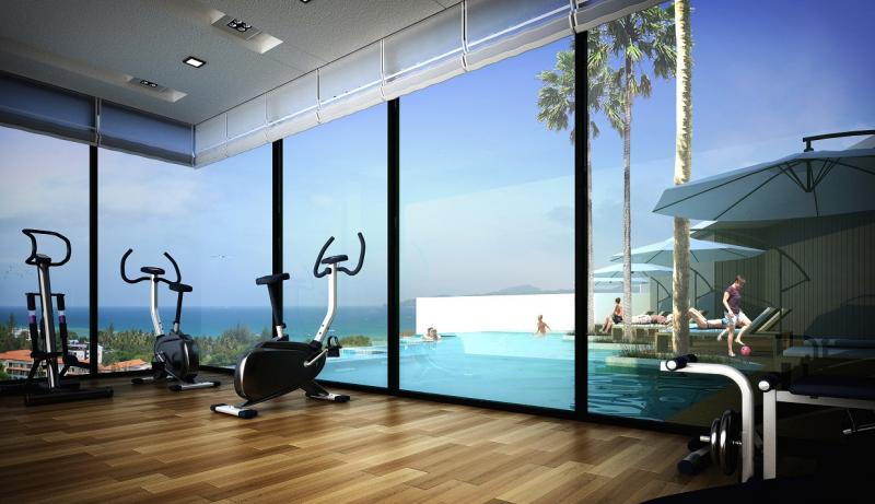 From the 7th floor, where the penthouses and also the communal swimming pool and gym will be located, there is a stunning view over Bang Tao and Surin beaches, and the green mountains at the other side.