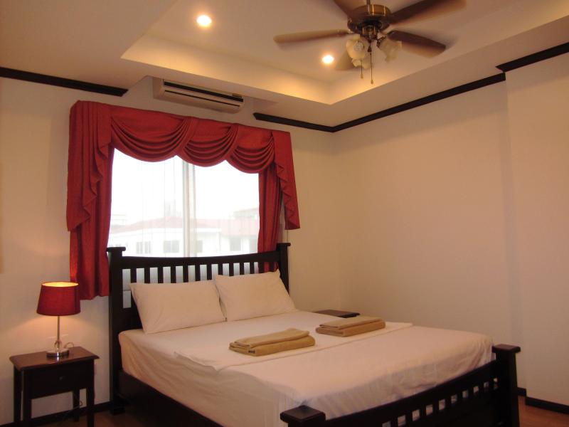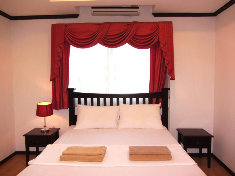 Siam Oriental Twins Condo Pratumnak soi 4, Pattaya, condo 7-story building is divided A - B the room on 5 floor building A Room size 48 SQ.M, 1 Bedroom Type, Fully furnished, European kitchen furniture, large Balcony, City View and Sea, the Pool in the middle of the first floor, sauna, dressing room and entrance by Key card system, Parking under the building, Security 24hr.