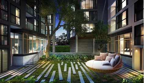1.) แม้เป็น Low Rise สูง 8 ชั้น แต่ทำ Courtyard สวนหย่อมเป็น