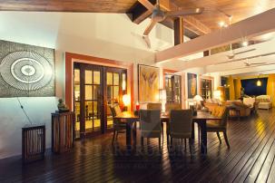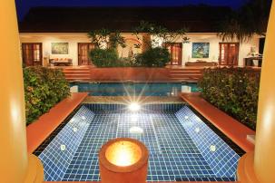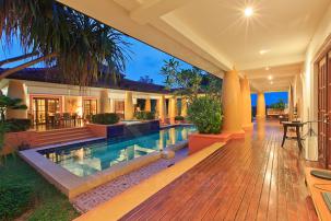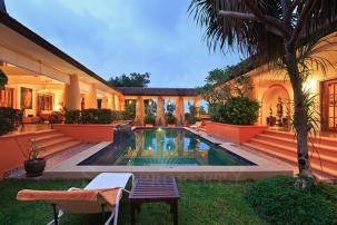 Villa Style balinais Cette belle villa de 500m2 est située à environ 7 km ou 5 minutes en voiture au sud du centre ville dans les collines verdoyantes de Hua-Hin. Situé au cœur d`un jardin tropical, cette magnifique maison, dans un quartier résidentiel bien gardé, garantit le calme et la détente.