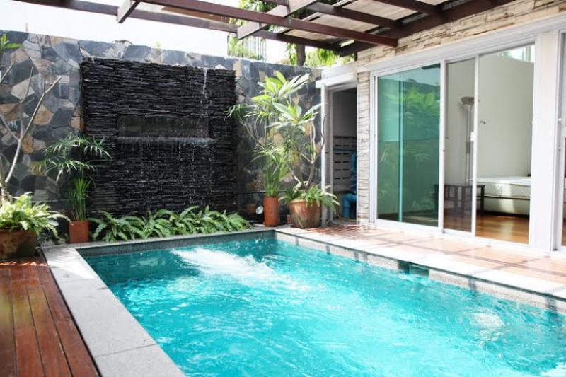 Very Beautiful house and Garden with exercise pool at Prime location on Sukhumvit 23. Total area is 420 sq. meter on 148 sq wah. Walking Distance to BTS/MRT Asoke Three bedroom with bathtubes and showers with modern updated kitchen with high end appliances, Living room overlook exercise pool, dinning room, and family room. Small pet is allowed.