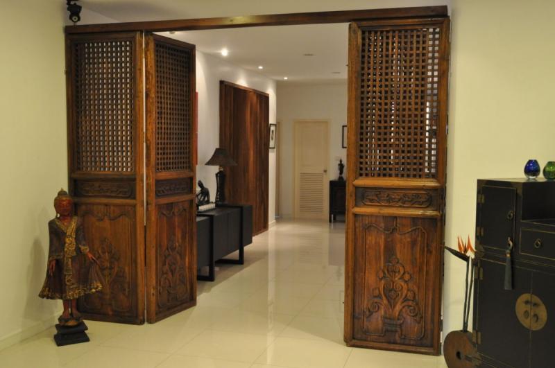 Large apartment with 3 bedrooms, 3 bathrooms, entrance, living room, dining room, fully equipped kitchen, utility room, 3 balconies attached to the bedrooms, 1 large terrace of 50 sqm in continuity of the living room. The lighting of the living rooms is flexible for different atmospheres.