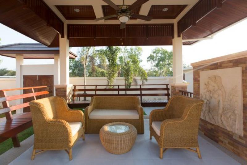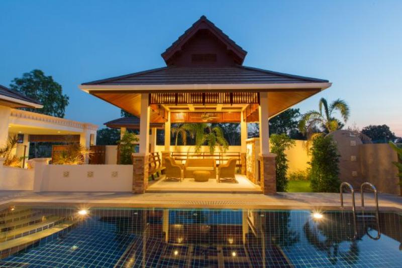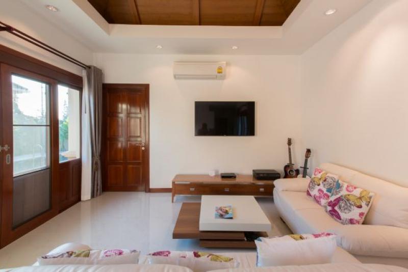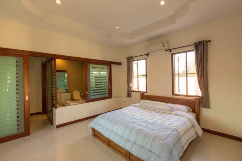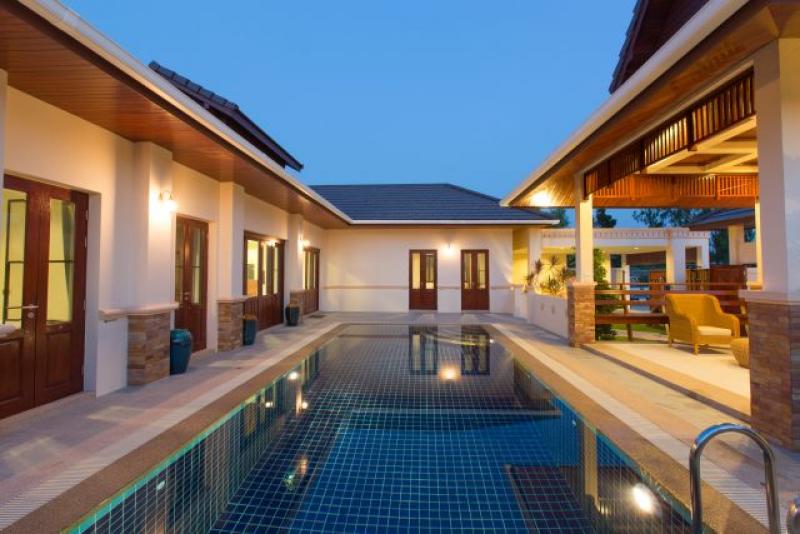A Pool Villa for sale consists of 3 beds 2 baths, private swimming pool size 3.5 x 9 m. with private garden in a big plot of land of 400 sqm in Hua Hin, Thailand. The house is built with a high materials with full equipped of kitchen and it is located in a very popular peachful mountainous area of Hua Hin only 12 mn from downtown.