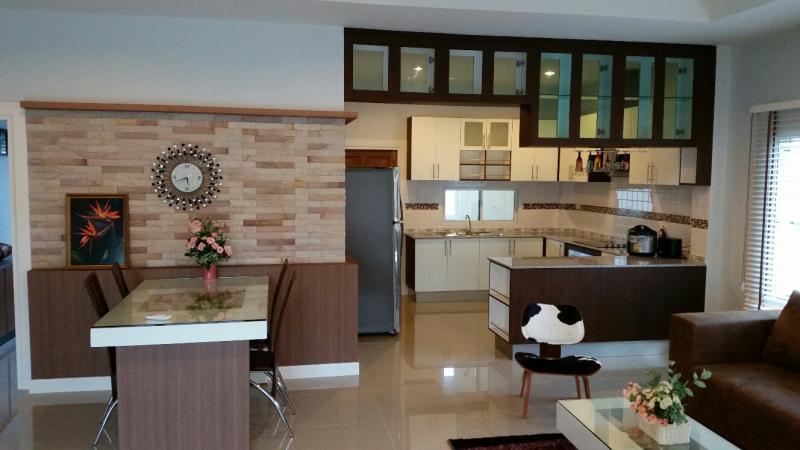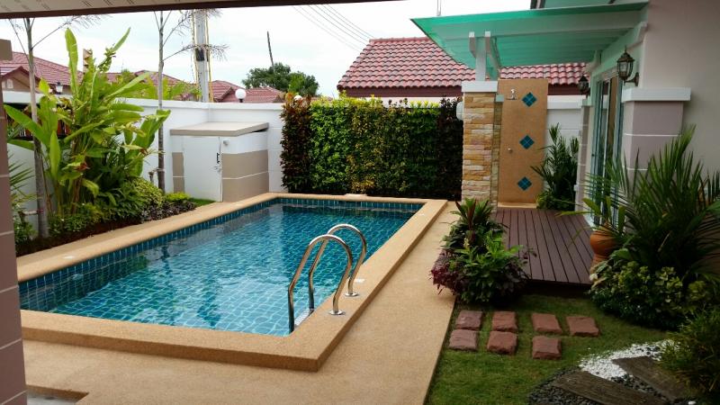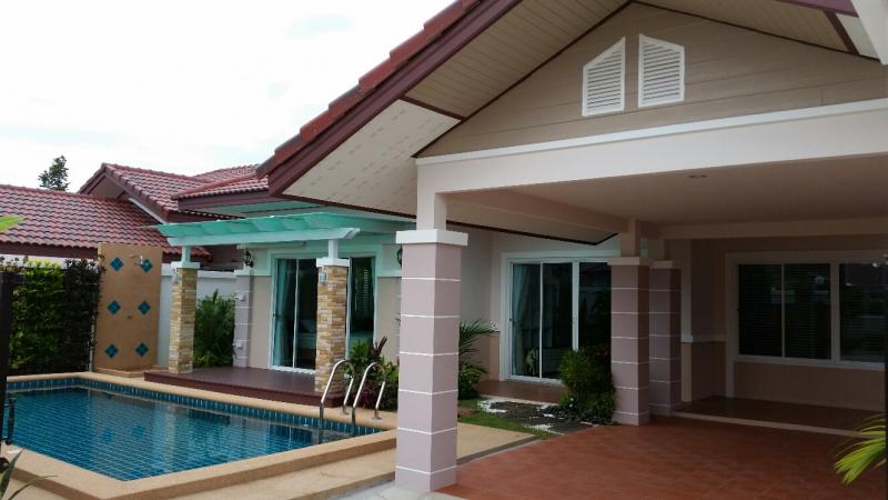 House for sale in Huai Yai in great location just few minutes from Sukhumvit main road and 20 minutes from Central Pattaya. Brand new Village in Huai Yai which is safe, quiet and very easy to find in that area 7/11, massage shop, restaurant`s local market & bars. 24 hours security with CCTV system and the house is 3 bedroom, 2 bathroom with private garden & swimming pool. The house coming with fully furnished and fitted kitchen. Perfect and harmonic living who buy this house.
