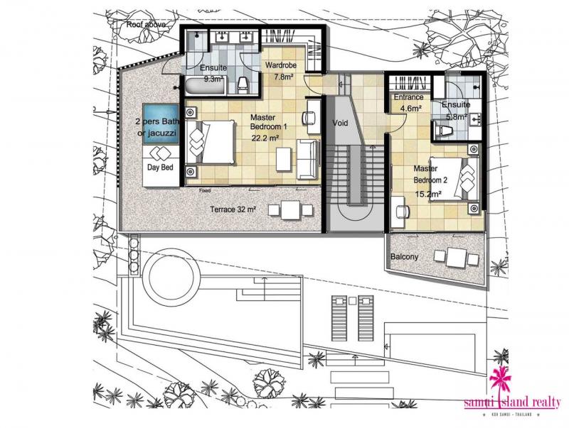From the second floor living area stairs lead up to the the top floor which comprises of the 2nd en-suite guest bedroom and spacious master bedroom, complete with bathtub, wrap around private balcony and jacuzzi.