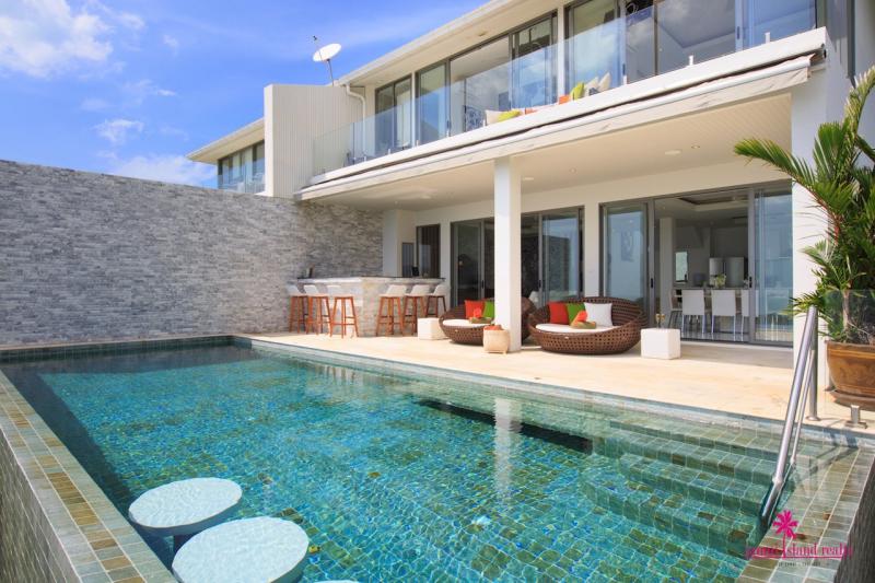 Villa Apsara For Sale Koh Samui – This modern luxury villa is located on a prestigious West facing hillside in `Plai Laem`, boasting breathtaking ocean & sunset views that capture the neighbouring islands of `Koh Som`, `Koh Phangan`, `Koh Tao` & `Angthong National Marine Park`. The villa`s superb location also puts you within a few minutes walk to two swimming beaches.