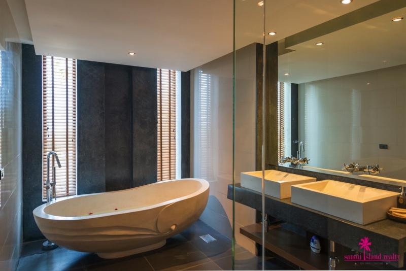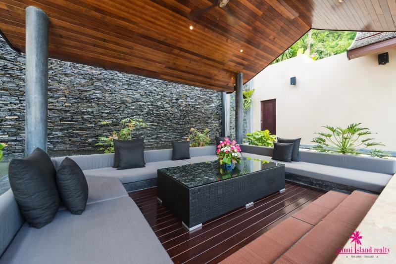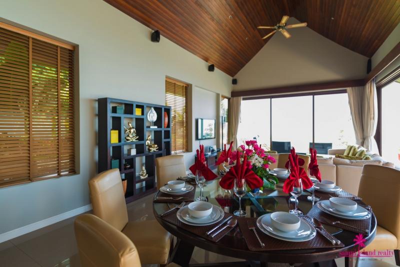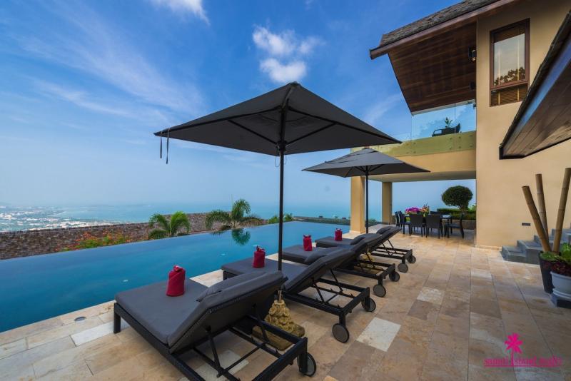 There is a covered pool sala with confortable seats for relaxation and surrounded by the fishpond. To the right of the villa there is a spacious en-suite bedroom with direct access to the swimming pool. The staircase leads up to the second floor, there are three spacious en-suite bedrooms. Each bedroom has been appointed with air-conditioning, luxury king-size bed, LCD TVs, and finished with chic Thai decorations. The master bedroom boasts direct access to the private balcony with lounge seats & Jacuzzi for an ultimate relaxation. All bedrooms are enjoying spectacular sea views.