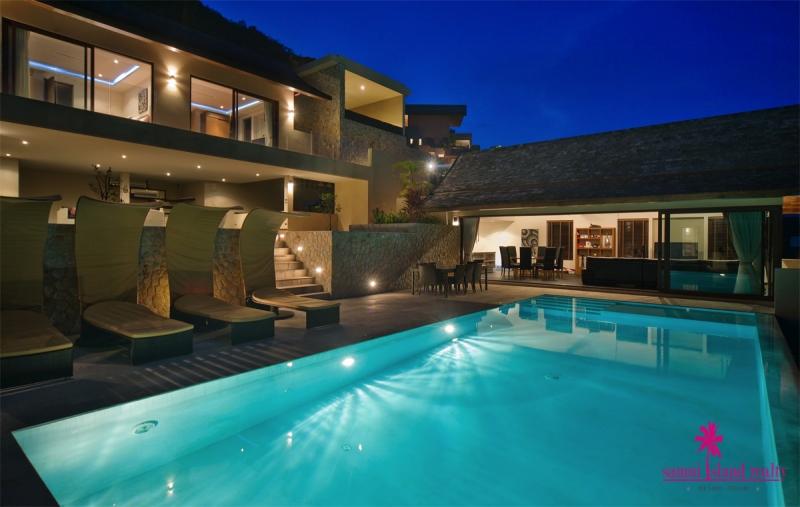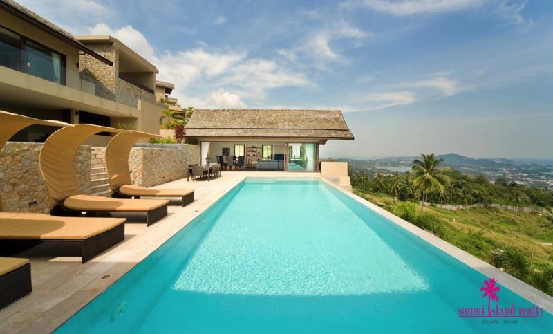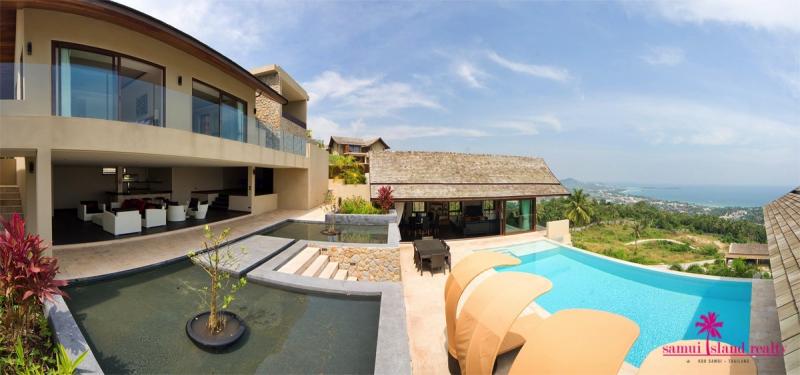 Chaweng 5 Bedroom Villa For Sale Koh Samui – A magnificent modern villa, situated in Chaweng Hills, just a few minutes from the famous tourist town of Chaweng with it`s stunning long sandy beach, great restaurants, shopping malls & lively nightlife. This villa boasts one of the most spectacular panoramic sea views on the tropical island of Koh Samui & offers a secure residential community with full property/site management in place.