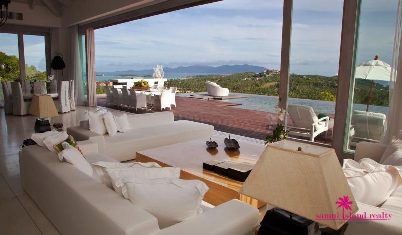 Villa Michaela is accessed from the large rear parking bay, from here large wooden door opens into the tropical courtyard with beautiful flowers, trees and fish ponds on both sides. The courtyard pathway leads you to the spacious open-plan living area which boasts the most magnificent panoramic sea views that capture the bays of Plai Laem, Choeng ...