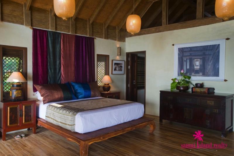 Spread across 6 rai of landscaped tropical gardens, boasting 180 metres of beach frontage, this villa enjoys unrivaled sea views from every section of the property. The villa comprises of 7 en-suite bedrooms set across separate living pavilions. The large wooden Chinese entrance doors provide complete privacy and direct you too the fairytale paradise with stone pathways that lead to each of the pavilions.