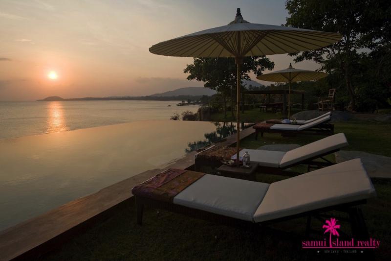 Laem Set Beachfront Villa For Sale Koh Samui – Situated within a secure estate, surrounded by lush tropical landscaped gardens on the South East coastline of Koh Samui. This unique property boasts spectacular panoramic views, which capture the entire South coast of Koh Samui, neighbouring islands & the distant mainland.