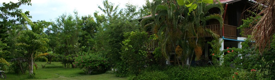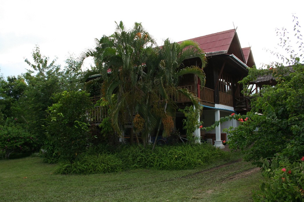 The Rice House a teak wood barn at least 50 years old, originally built to store rice. We dismantled it in the neighboring village and rebuilt it here. According to local custom, these houses are built on wooden columns to protect the rice from insects and animals.