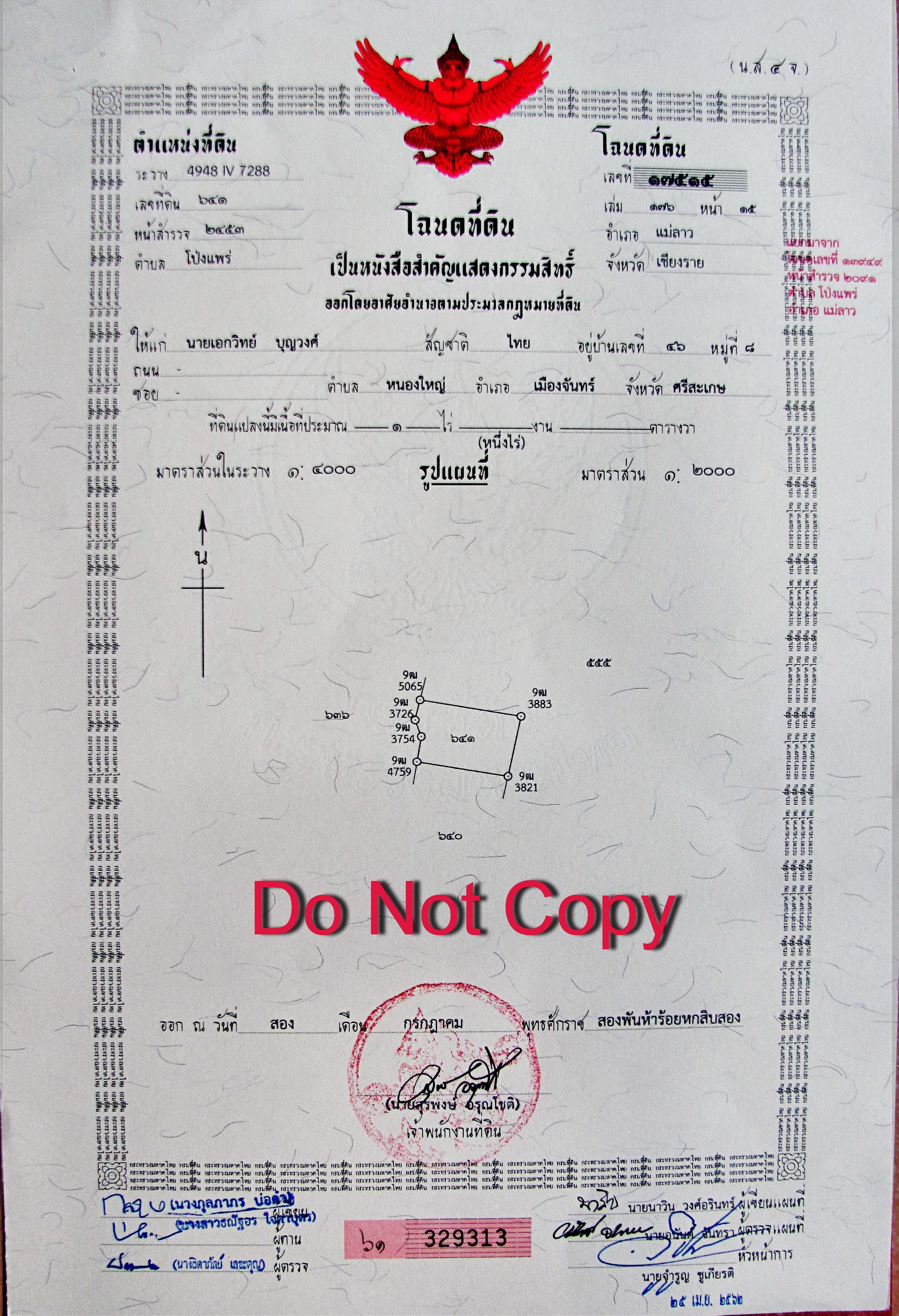 full chanotes (freehold titles) issued 3 years ago. Land prices in this area continue to appreciate at a very good rate. New street lighting has been installed. You won`t find a better area or price to build your dream home. If you are looking for land with incredible mountain views in a beautiful country setting within a 15 minute drive from downtown Chiang Rai I don`t think you will find a lower price e and see the spectacular mountain views for yourself! Goggle Map #19.804309,99.686249