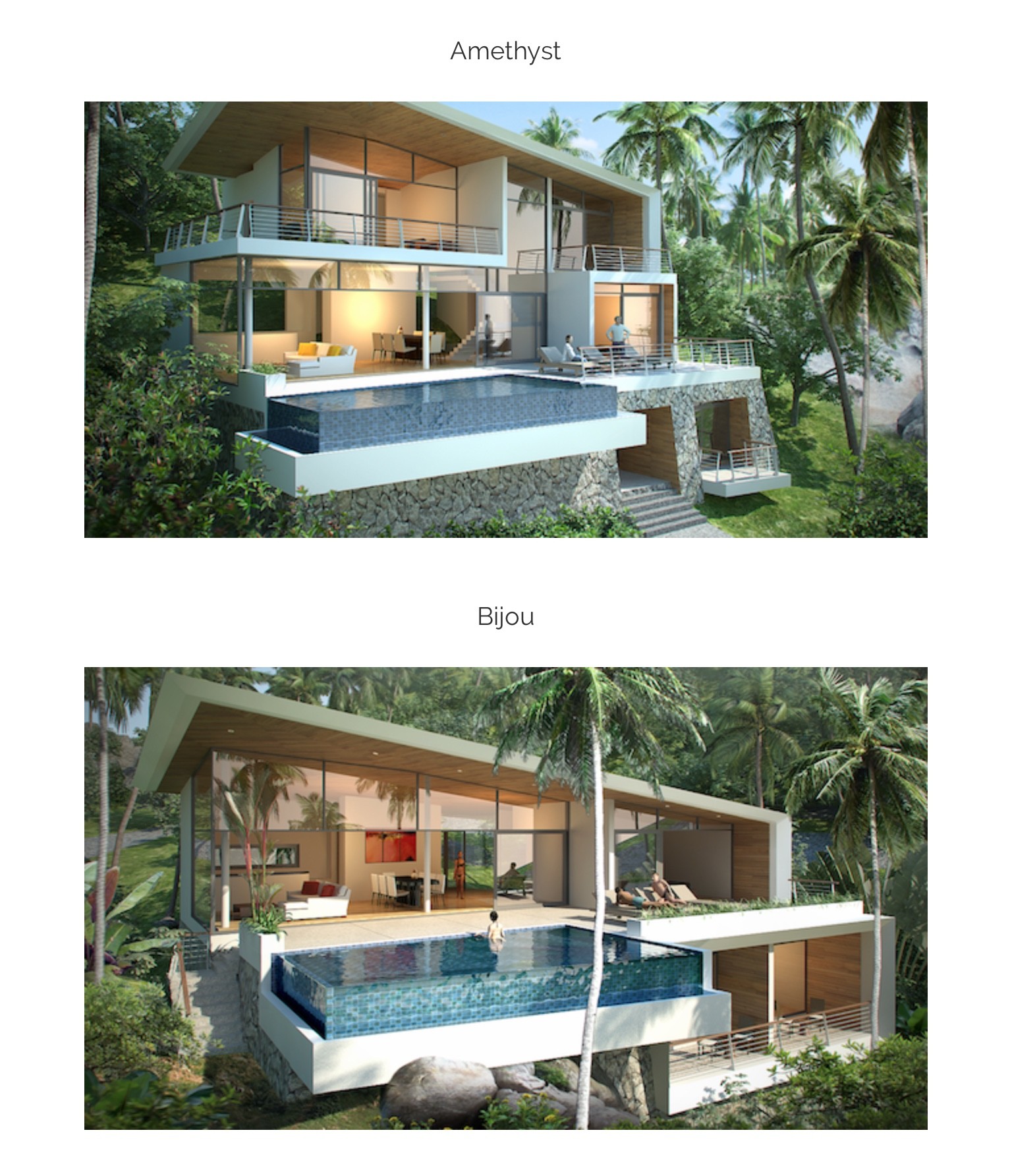 residences in the Oasis Samui development, with three separate floors