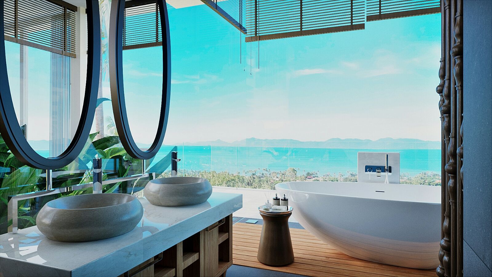 Samui. The sumptuous villas offer one-hundred-and0eighty-degree ocean views and are the perfect