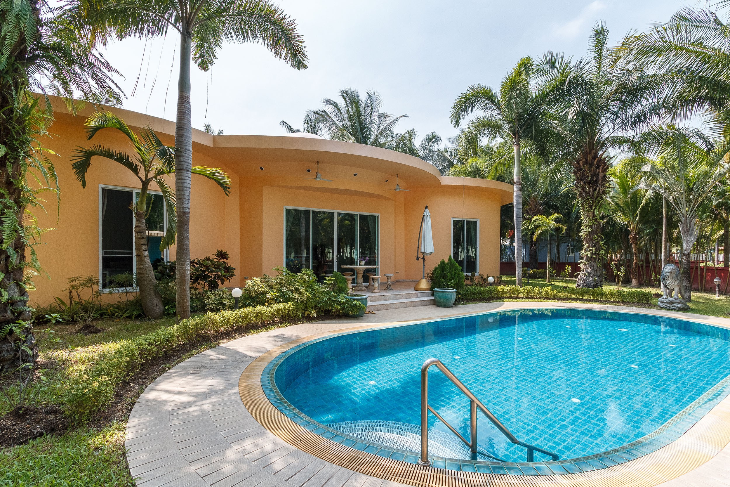 very generous land plot of 1,600 sqm ( 1 x Rai) of tropical landscaped gardens. The house was originally