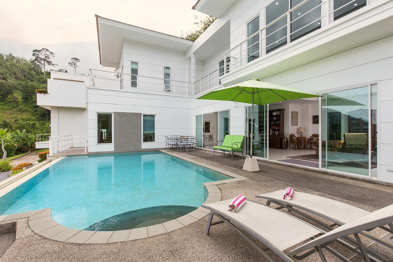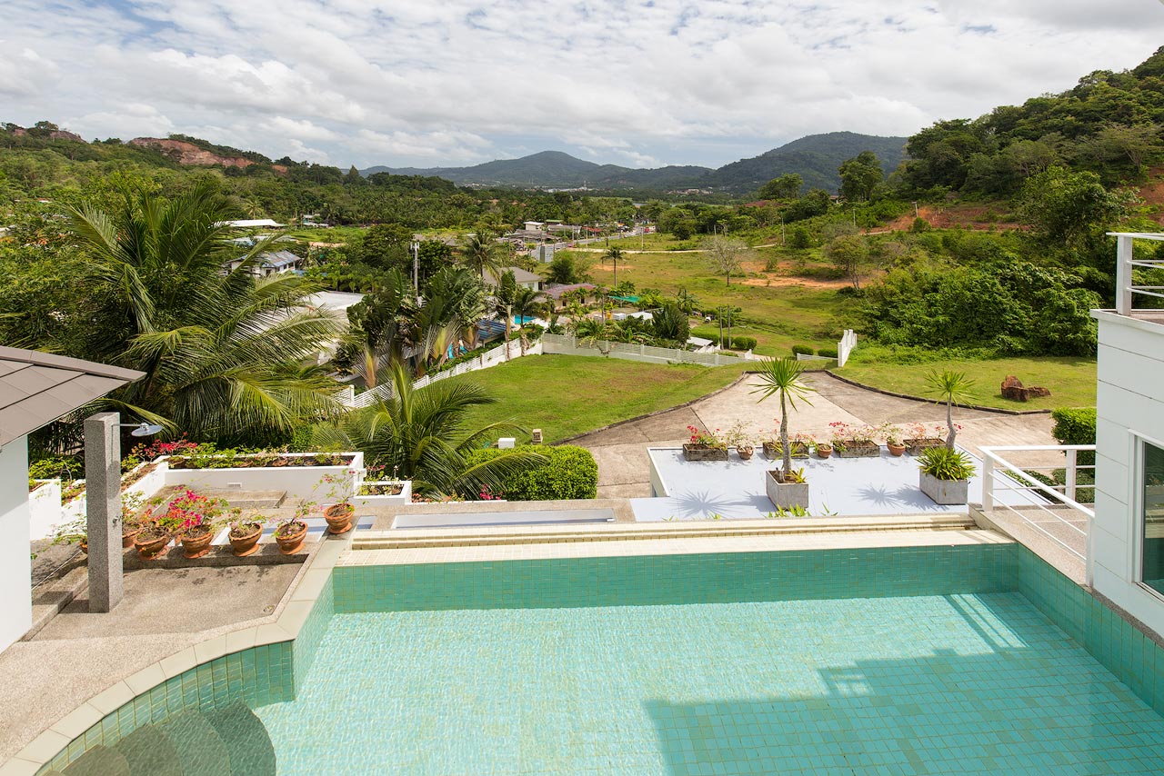 A conveniently located and contemporary designed pool villa set on a hillside looking across the Kathu valley over the lush fairways and greens of Loch Palm golf course.