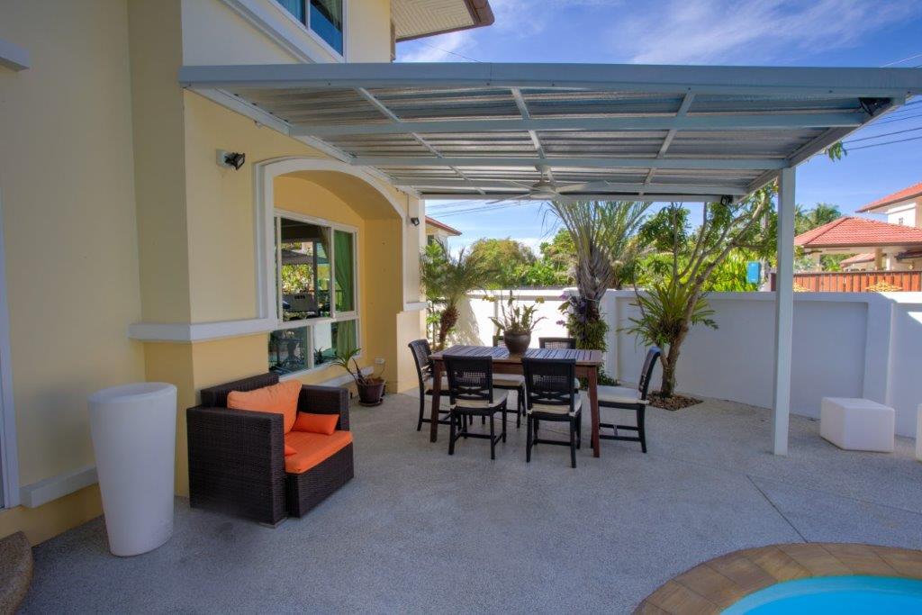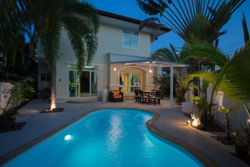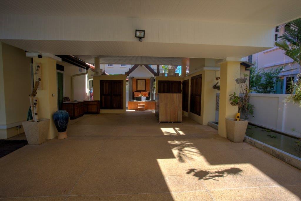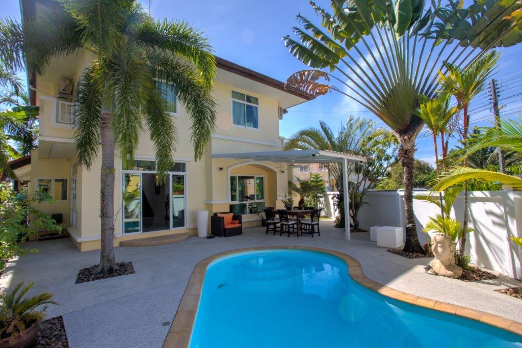 Sale luxury pool villa in Chalong, Phuket, 150 meters from the sea Chalong Bay Land 104.9 sq.w (419.6 sq.m), usage area 211 sq.m, chanot title 3 Bedrooms, 3 Bathrooms, fully equipped, Pool salt water Beautiful landscaped with fishpond 4 cars park, villa secured by cctv and alarm 1Km to the new international school BCIS