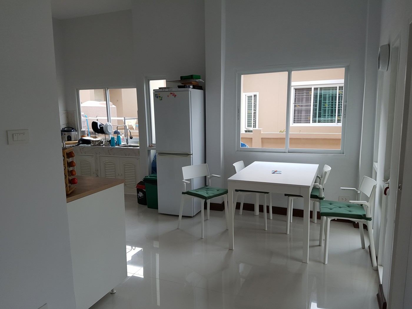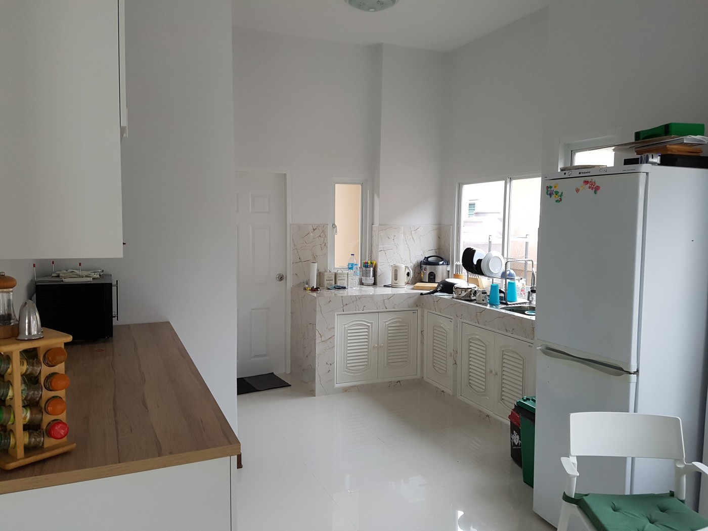 One year old new build 3 bedroom 3 bathroom many upgrades rear of house has been extended full length out side power points and extra water points fullly tiled both sides and rear electric power showers extra kitchen units security screens on all doors and windows air conditioning in living room and lounge we paid 2.8 million bang for the house and spent another 400.000 on upgrades