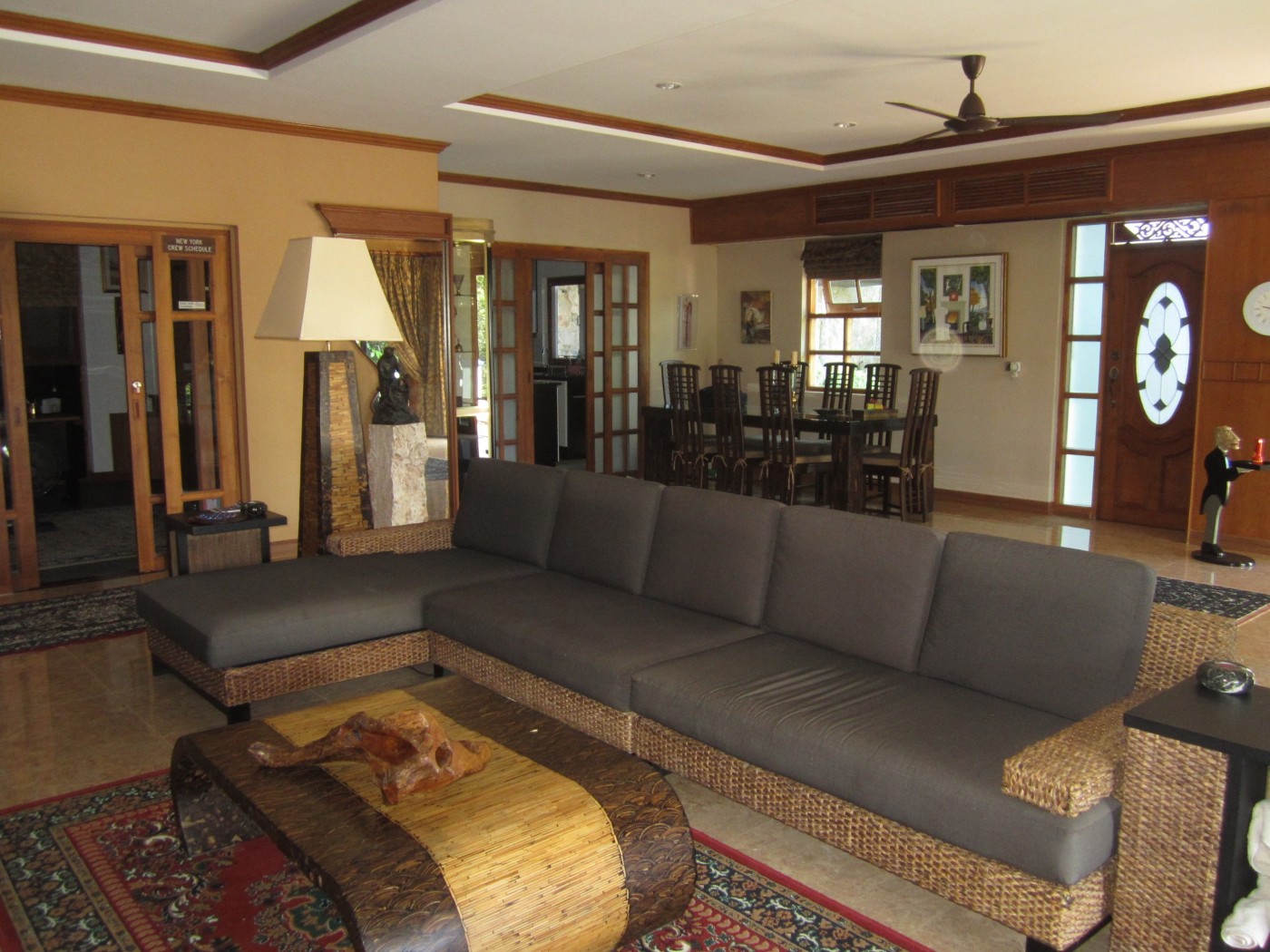 The Living Room opens out to the terrace with sliding teak & glass doors, so